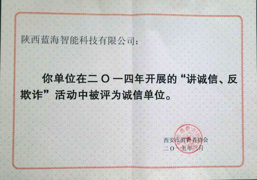 我公司自成立以來,堅(jiān)持提供優(yōu)質(zhì)的產(chǎn)品和貼心的服務(wù),廣受客戶及業(yè)內(nèi)人士的好評。現(xiàn)經(jīng)過有關(guān)部門的嚴(yán)格審查及層層篩選,我公司榮獲2014年度“誠信單位”的榮譽(yù)稱號。