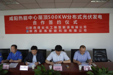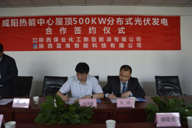 2017年5月10日上午10時,“咸陽熱能中心屋頂500KW分布式光伏發(fā)電合作簽約儀式”在咸陽新興紡織工業(yè)園熱能動力中心會議室舉行。陜西煤業(yè)化工新型能源有限公司總經(jīng)理全茂雄、咸陽新興紡織工業(yè)園熱能動力中心總經(jīng)理張東社、陜西藍(lán)海智能科技有限公司總經(jīng)理方濤等領(lǐng)導(dǎo)出席儀式。